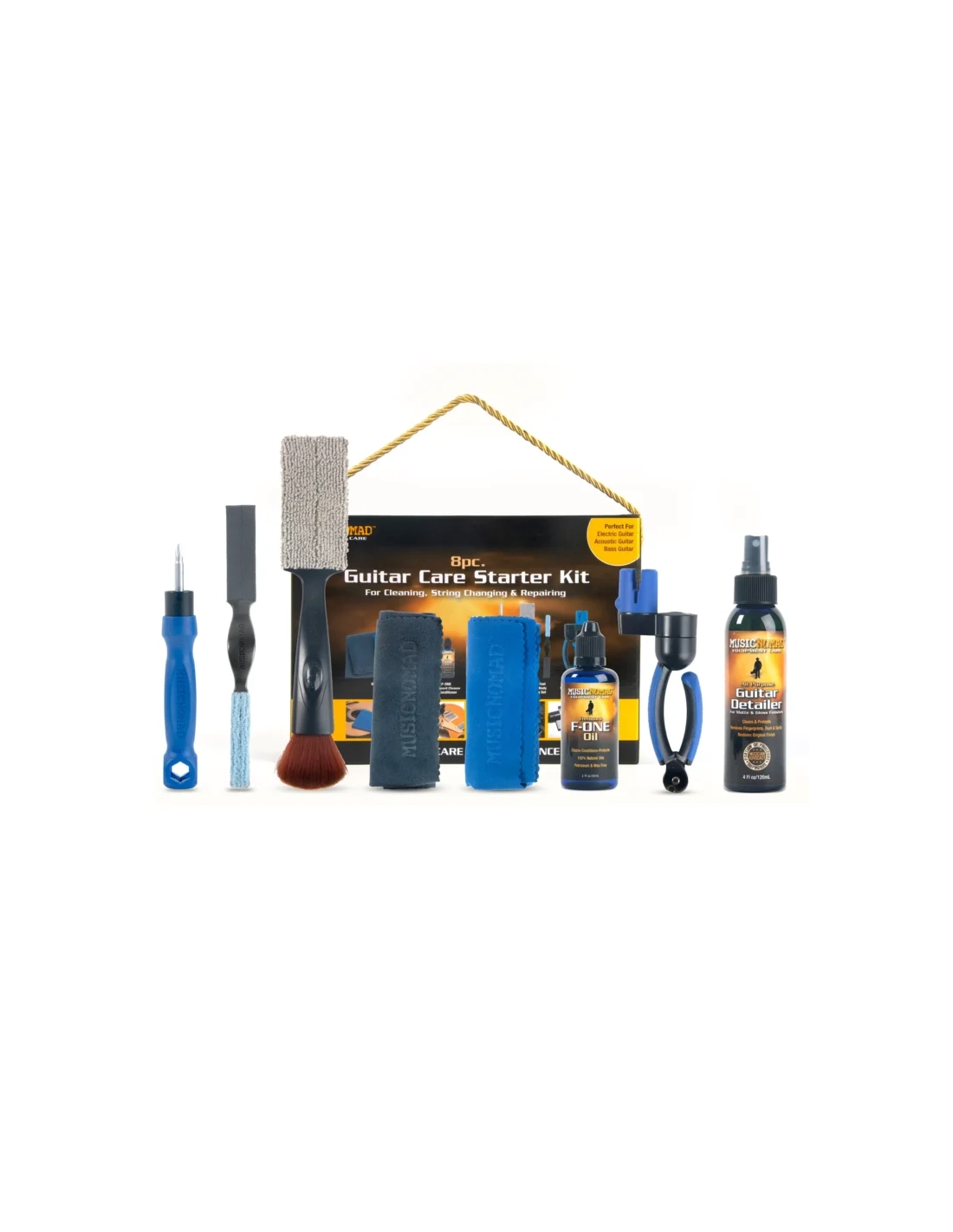 - 8-piece guitar care starter kit for electric, acoustic, and bass guitars