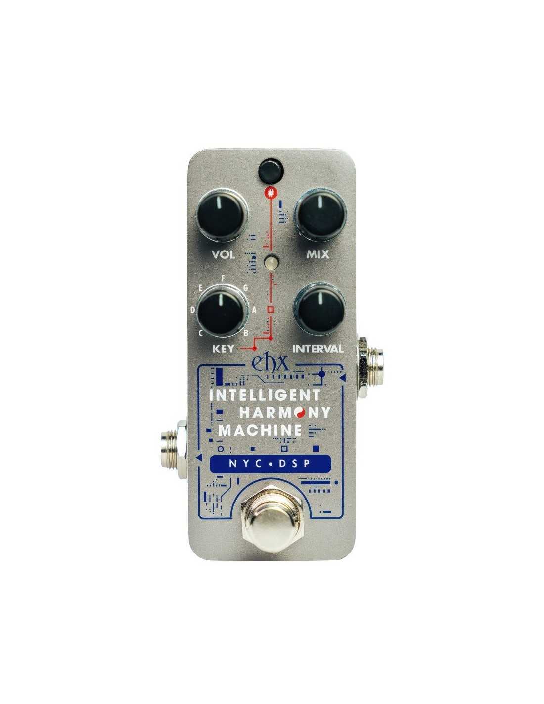 Housed in Electro-Harmonix’s pico-sized chassis, the Pico IHM features an intuitive control layout. The KEY knob works together with the # button to define the harmony key, while the INTERVAL control selects from 10 carefully voiced harmonic intervals. MIX allows precise blending of the dry and harmony signals, and VOL sets the overall output level. By holding the # button, Dual Mode is activated, adding a second harmony voice for rich, expressive 3-part harmonies when combined with the dry signal.