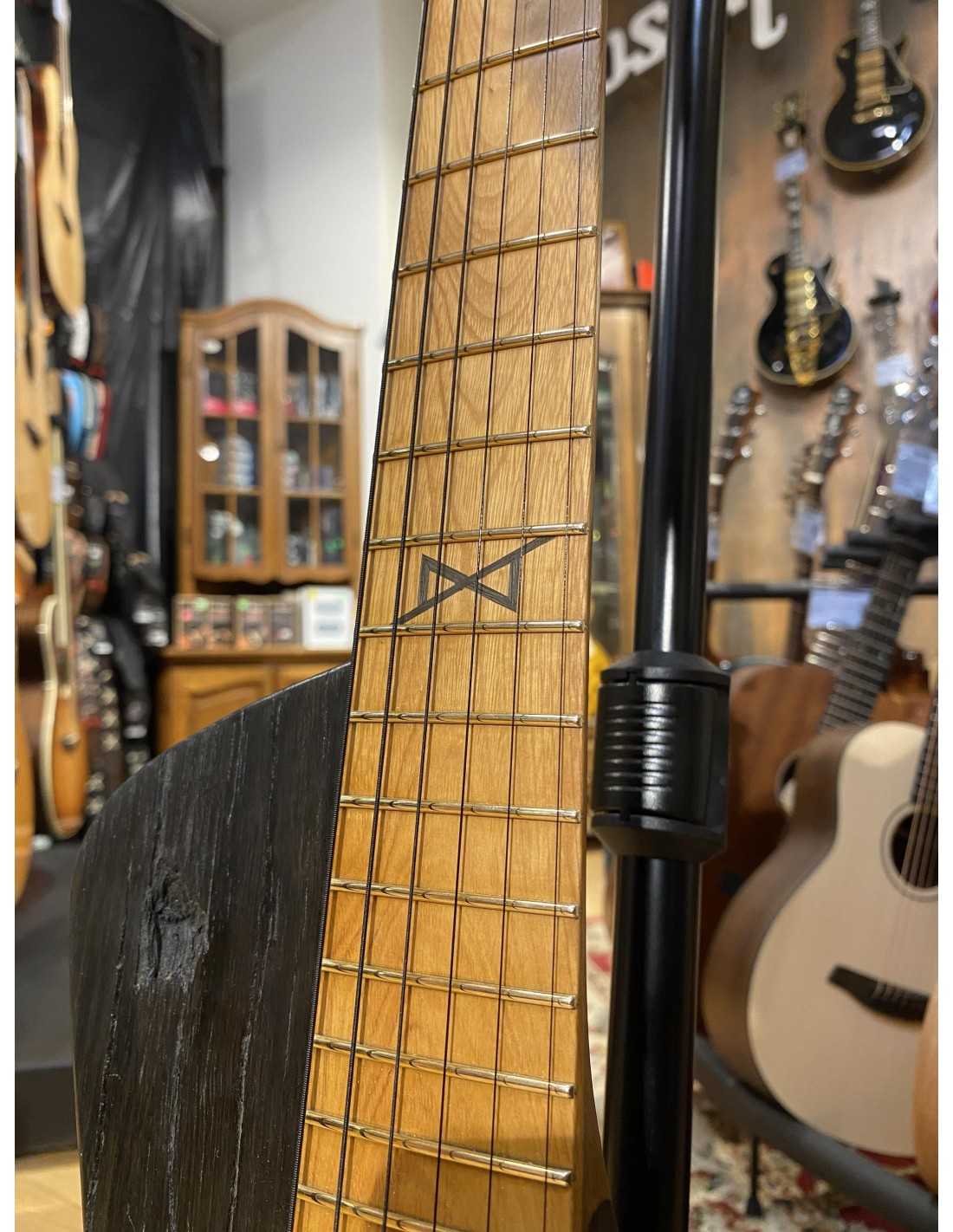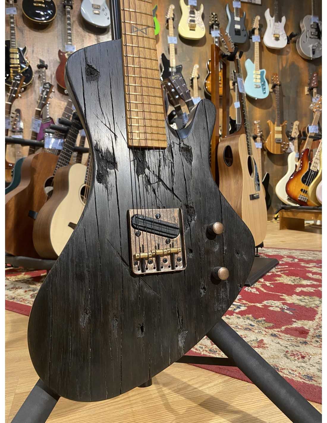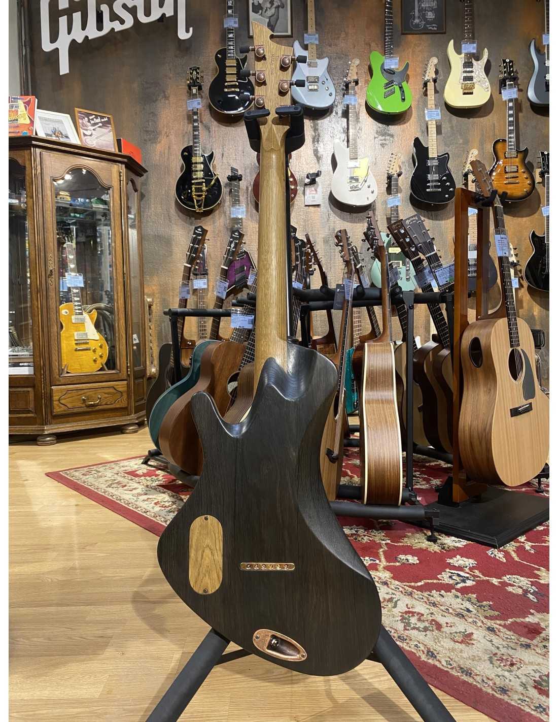 The combination of dense bog oak body and hot-output Power Blade pickups delivers thick, articulate tones with exceptional sustain. The carbon-reinforced oak neck provides stability while maintaining organic feel. The 12" radius and fret falloff design make bends and lead work effortless.