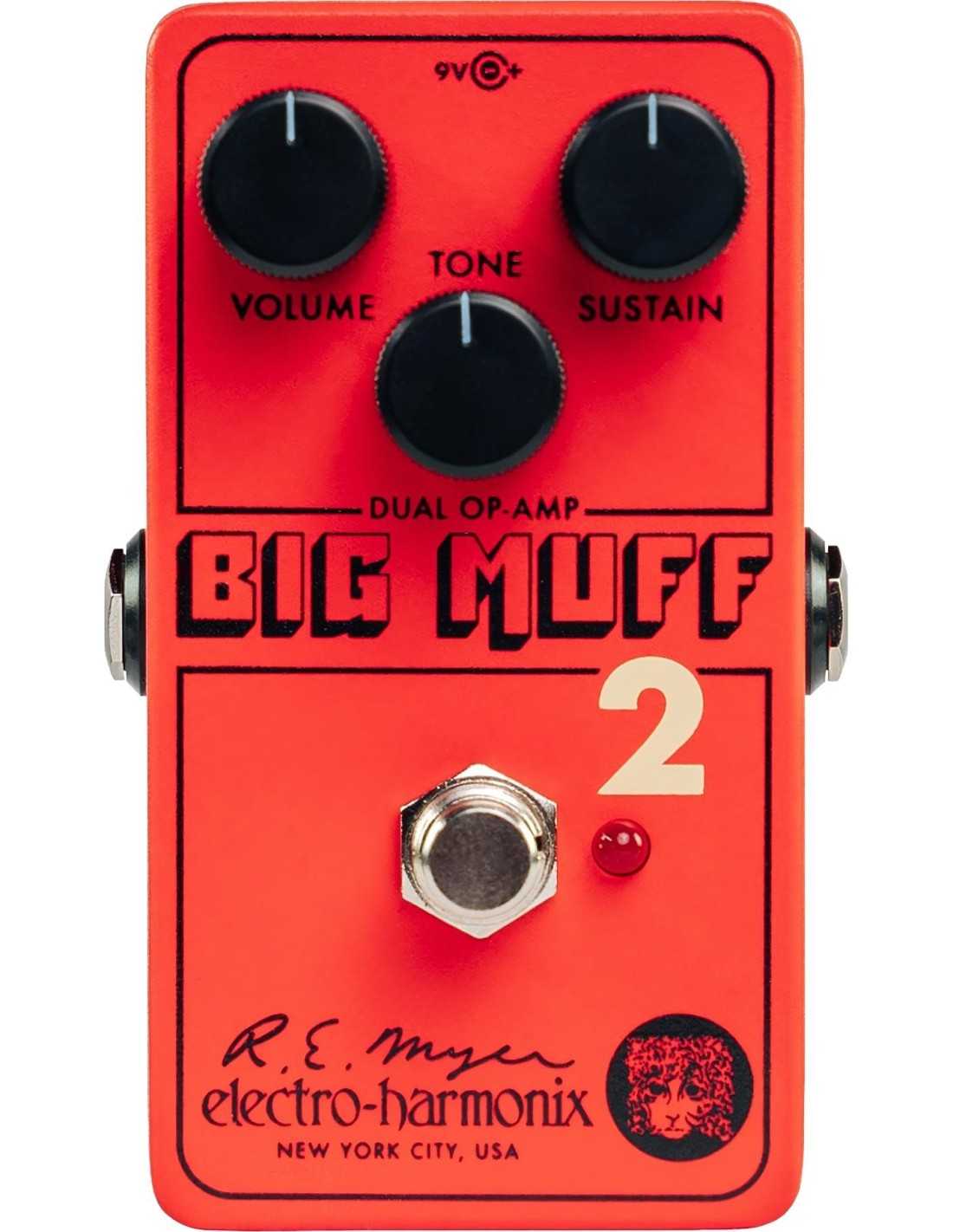 Electro-Harmonix Big Muff Pi 2 toob tagasi 1970ndate lõpus kõrvale jäänud kahe op-võimendiga Big Muffi skeemi, pakkudes klassikalist pikka sustain’i veidi toorema ja fuzzisema iseloomuga. Volume-, Tone- ja Sustain-juhtnupud, vaikne true bypass latching- või momentary-režiimiga ning Daniel Dangeri kujundus teevad sellest kompaktse, ent äratuntavalt Big Muffi kõlaga fuzz-pedaali.