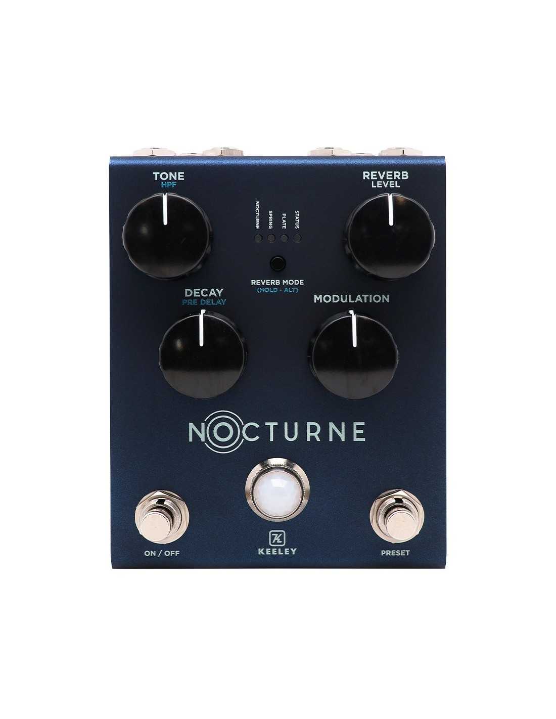 Keeley NOCTURNE Signature Andy Timmons Reverb on tipptasemel reverbipedaal kolme kvaliteetse režiimiga — Nocturne, Spring ja Plate — pakkudes lihtsat nelja nupu juhtimist ja suurt helilist paindlikkust. Presetid, expressionpedaali ja MIDI tugi, stereotöötlus ning stuudiokvaliteediga algoritmid teevad sellest võimsa, lavavalmis ambientse heli tööriista.