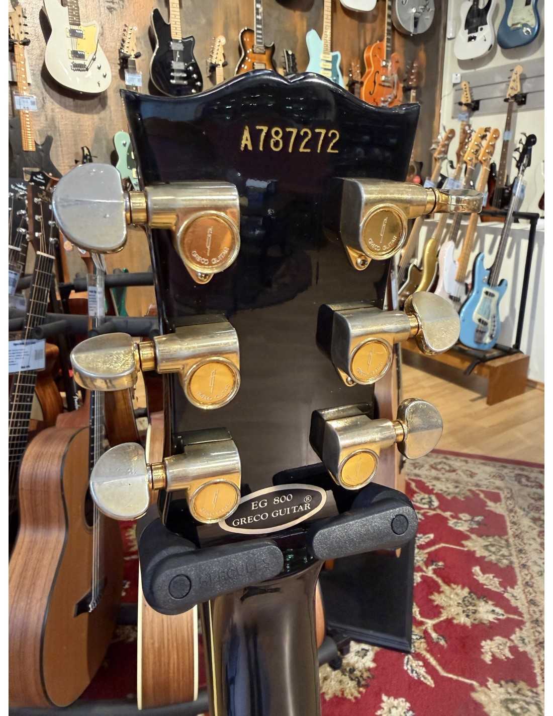 1978. aasta Greco EG-800 Custom klassikalises mustas viimistluses, Macassar eebenipuust sõrmlauaga. Kahe Maxon humbuckeriga, plokkmarkeeringute ja mitmekihilise bindinguga. Heas ja hooldatud seisukorras, esineb loomulikke vananemisjälgi ja kulumist kullatud riistvaral. Meie parima teadmise järgi originaalosadega. Kaal 4,8 kg. Kaasas kõva kohver.