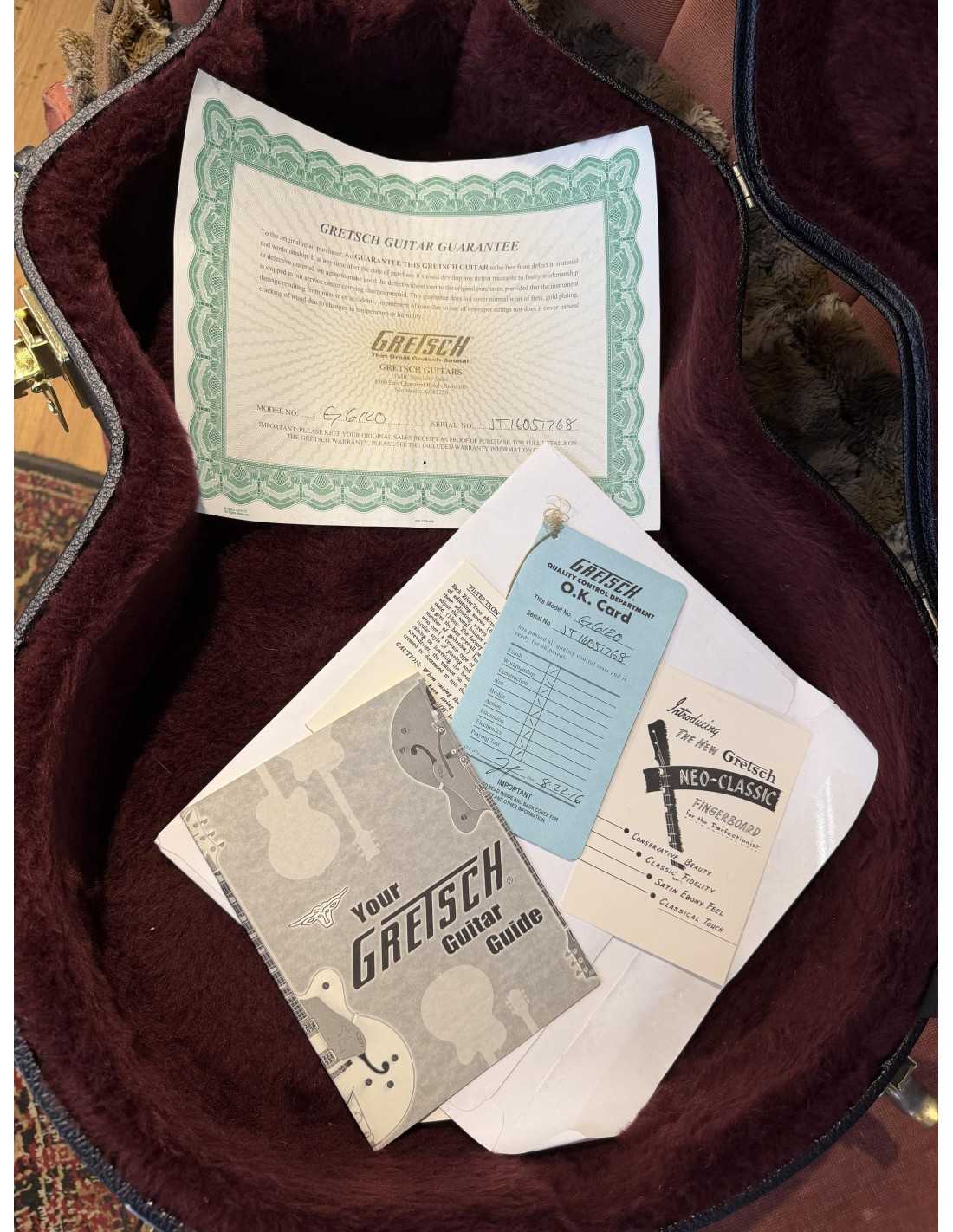 - Komplektis Gretsch® deluxe kõvakohver ja dokumendid