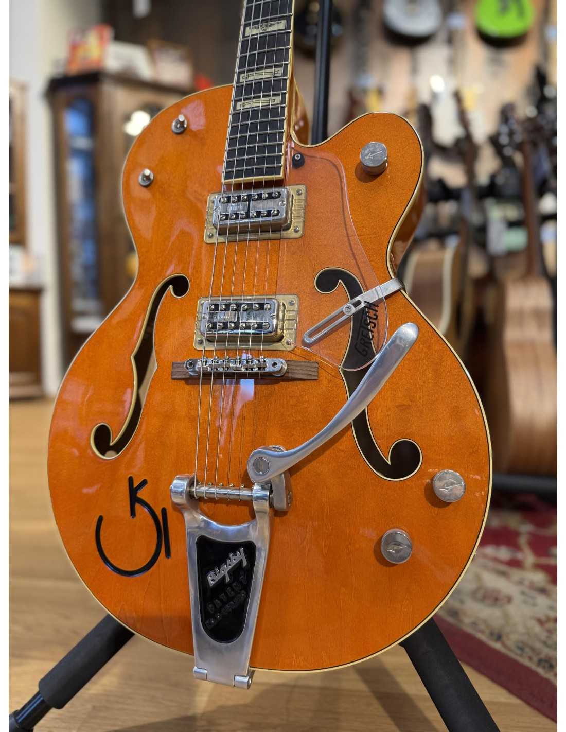 Part of the Gretsch Professional Collection, this Nashville® / G6120 model represents the pinnacle of Gretsch hollow body craftsmanship. Finished in a striking Orange Stain Lacquer, it combines vintage aesthetics with modern performance reliability. Designed for right-handed players, this 6-string hollow body delivers classic Gretsch tone, feel, and visual identity.